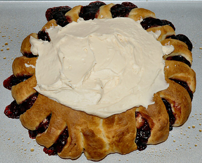 This raspberry-filled sweetroll was photographed brief minutes after it was frosted (by Mike Benveniste).